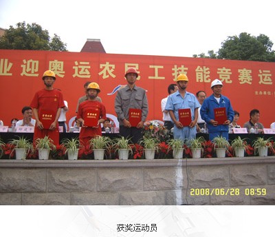 2008年6月28日我公司參加了由南京市建工局舉辦的“南京建筑業(yè)迎奧運(yùn)農(nóng)民工技能競賽運(yùn)動(dòng)會(huì)”,在17支參賽隊(duì)伍中,取得第六名的佳績。
