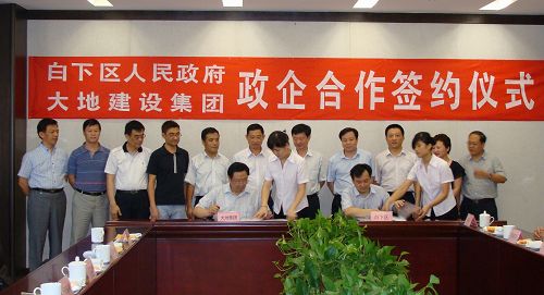南京大地建設(shè)集團(tuán)有限責(zé)任公司與南京市白下區(qū)政府于2010年8月6日下午在白下區(qū)政府第五會(huì)議室舉行了“政企合作簽約儀式”。