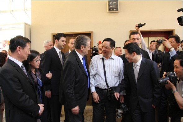本次博覽會(huì)阿各大主流媒體爭(zhēng)相報(bào)道,參觀(guān)群眾絡(luò)繹不絕,在當(dāng)?shù)匾饦O大轟動(dòng)。貝里沙總理和巴沙市長(zhǎng)親切接見(jiàn)了公司于董事長(zhǎng)。(圖為阿爾巴尼亞總理貝里沙與于董事長(zhǎng)親切交談)