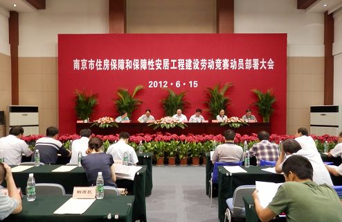 6月15日下午,南京市召開保障房建設(shè)勞動競賽總結(jié)表彰暨動員大會。省建設(shè)工會陳海昌主席、市住房和城鄉(xiāng)建設(shè)委員會毛龍泉、李真副主任等相關(guān)領(lǐng)導參加了會議。會上,毛龍泉副主任對2011年南京市住房保障和保障性安居工程建設(shè)勞動競賽作總結(jié)并對2012年競賽活動動員部署;省建設(shè)工會和市總工會負責人宣讀表彰2011年度全國、省、市住房保障和保障性安居工程建設(shè)勞動競賽活動先進集體和先進個人的決定。