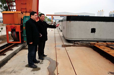 近日,南京市市政公用局劉剛副局長率專家組一行在公司副總裁兼總工程師劉亞非、副總工程師倉恒芳等人的陪同下,興致勃勃地參觀了我公司的新型建材生產(chǎn)基地——大地工業(yè)園,并就我公司正在進行的南京市雨污分流工程中的排水設施沉井現(xiàn)澆改預制科研項目進行了研討。