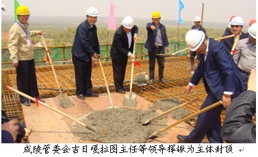 內(nèi)蒙成陵管委會(huì)吉日嘎拉圖主任攜同管委會(huì)郝門克副書記、那楚格副主任、奇景陽副主任、宋子斌副調(diào)研員以及建設(shè)局張局長(zhǎng)、財(cái)政局蔚局長(zhǎng)、人事局敖副局長(zhǎng)一行參加了封頂儀式。吉日嘎拉圖主任在封頂儀式的講話中對(duì)我公司的前期工作予以了肯定,對(duì)項(xiàng)目部嚴(yán)謹(jǐn)?shù)墓ぷ鲬B(tài)度,嚴(yán)格履行合同按圖規(guī)范施工的工作作風(fēng)給予了高度的評(píng)價(jià),并對(duì)項(xiàng)目部寄予了更高的期望。我公司項(xiàng)目經(jīng)理桂在友同志受江中明總經(jīng)理的委托,代表公司作了表態(tài)發(fā)言,他表示:項(xiàng)目部的全體員工決不辜負(fù)管委會(huì)的期望,將繼續(xù)認(rèn)真貫徹落實(shí)公司的各項(xiàng)工作方針,按照江中明總經(jīng)理的要求,嚴(yán)格管理精心施工,用我們大地人的勤奮努力把成吉思汗博物館工程打造成成陵的精品,向成陵人民、成陵管委會(huì)交上一份滿意的答卷。 |