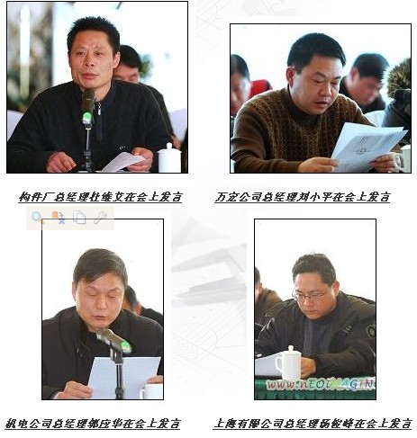 會(huì)議主要分為兩個(gè)議題:一是書面交流,二是座談交流,F(xiàn)場(chǎng)討論氣氛熱烈,大家紛紛就09年的企業(yè)管理、企業(yè)發(fā)展等問(wèn)題進(jìn)言獻(xiàn)策,踴躍發(fā)言。在書面交流中股份公司總經(jīng)理江中明就“項(xiàng)目預(yù)算管理模式和實(shí)踐”談了自己的想法。他從股份職能部門的建設(shè)、項(xiàng)目過(guò)程控制、企業(yè)品牌、誠(chéng)信建設(shè)等方面進(jìn)行了深入闡述。普瑞公司的總經(jīng)理賀魯杰以“言必行,行必果——淺談企業(yè)的執(zhí)行力”為題,談了對(duì)執(zhí)行力的看法。機(jī)電公司總經(jīng)理郭應(yīng)華就“止住出血點(diǎn),再論工程成本的控制”、 構(gòu)件廠總經(jīng)理杜維艾就“對(duì)基層班子一把手執(zhí)行力的認(rèn)識(shí)”、珠海公司于國(guó)權(quán)就“施工企業(yè)如何進(jìn)行低成本管理”、上海有限公司總經(jīng)理湯俊峰就“加強(qiáng)項(xiàng)目管理,做響大地建設(shè)品牌”、萬(wàn)宏公司總經(jīng)理劉小平就“修煉內(nèi)功,準(zhǔn)備過(guò)冬”、 路橋公司總經(jīng)理趙祥興就“加強(qiáng)管理,積極運(yùn)作,扭虧為盈”、豪豐房地產(chǎn)公司總經(jīng)理顧衛(wèi)東就強(qiáng)化基層管理的執(zhí)行力等問(wèn)題都作了現(xiàn)場(chǎng)交流。