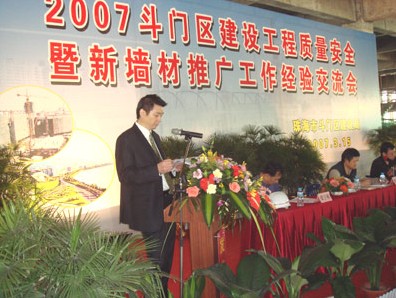 2007年3月11日由珠海市斗門區(qū)組織參觀我南京大地建設(shè)紫翔項(xiàng)目部,推廣我公司的工程質(zhì)量、安全生產(chǎn)、文明施工的管理經(jīng)驗(yàn),及2007斗門區(qū)建設(shè)工程質(zhì)量安全暨新型材料推廣工作經(jīng)驗(yàn)交流會(huì),在我紫翔項(xiàng)目部召開。到會(huì)的有珠海市領(lǐng)導(dǎo)、斗門區(qū)區(qū)領(lǐng)導(dǎo)、建設(shè)局領(lǐng)導(dǎo),會(huì)上珠海分公司于國權(quán)總經(jīng)理作大地建設(shè)管理經(jīng)驗(yàn)報(bào)告,會(huì)后市領(lǐng)導(dǎo)及到會(huì)的各建設(shè)單位、監(jiān)理單位、施工單位等參會(huì)200余人員,在于國權(quán)總經(jīng)理的陪同下興致勃勃的參觀了工地,對(duì)本工地上新型材料的使用、工程質(zhì)量、科學(xué)管理、安全生產(chǎn)、文明施工現(xiàn)場(chǎng)給予很高的評(píng)價(jià),為珠海建筑業(yè)樹起了新的典型。