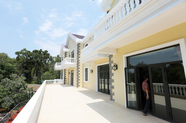 日月灣是是柬埔寨的旅游投資熱土,吸引了多方人士前來開發(fā)。我公司的賓館面積最大,檔次最高,最先具備接待能力。日月灣常年如春。別墅坐落在綠樹環(huán)抱之中,離海邊僅50米,憑窗望去,一望無垠的大海盡收眼底。別墅外觀歐式風(fēng)格,上部奶黃色涂料,下部文化石鑲嵌,屋面紅色琉璃瓦陽光下熠熠閃亮,內(nèi)部裝修全部是從國內(nèi)運來的高檔材料,8頭和10頭的紫銅色吊燈富麗堂皇,全套紅木家具頗顯東南亞風(fēng)格。