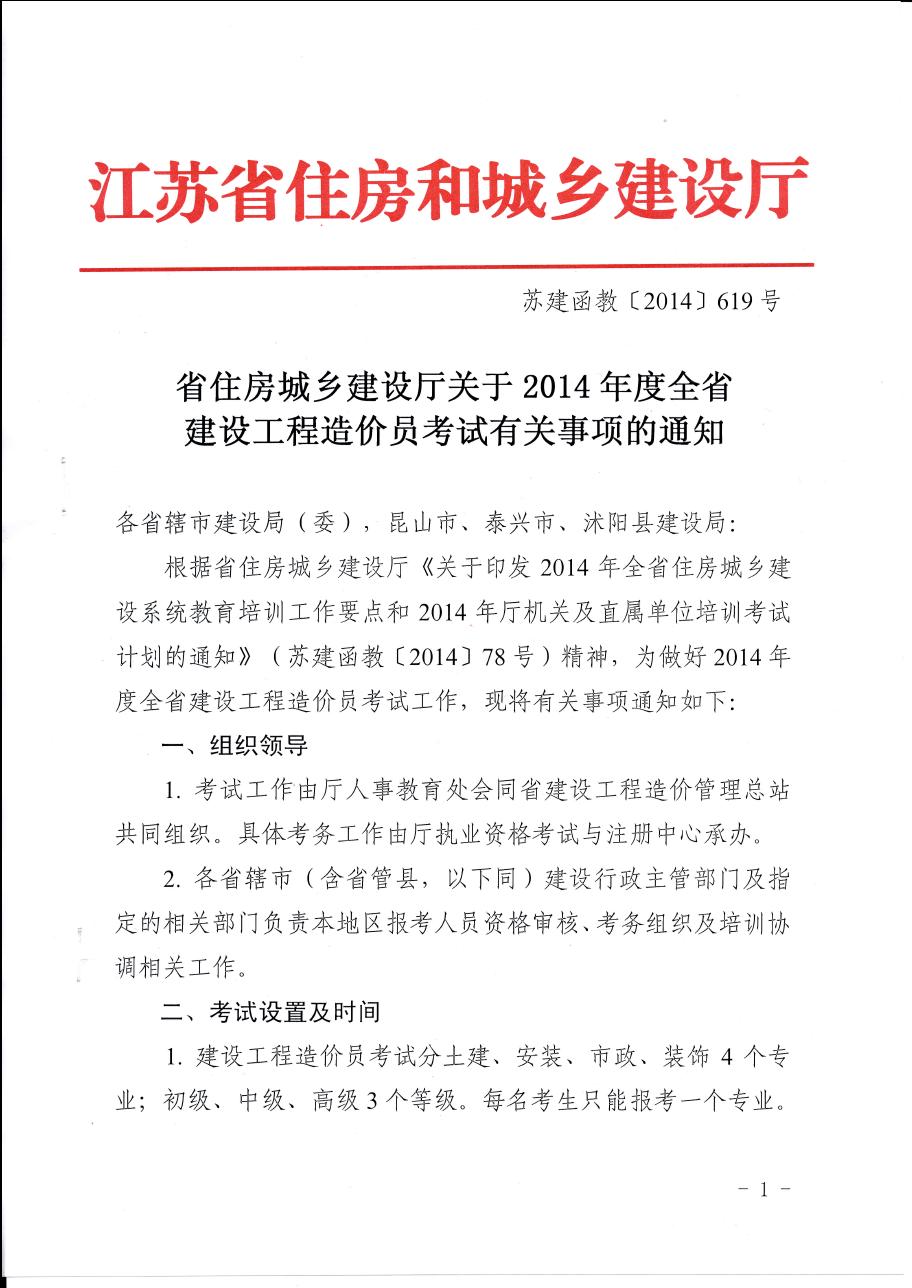省住房和城鄉(xiāng)建設(shè)廳關(guān)于2014年度全省建設(shè)工程造價(jià)員考試有關(guān)事項(xiàng)的通知