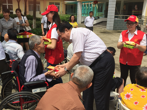端午節(jié)來(lái)臨之際,于國(guó)家董事長(zhǎng)與南京市慈善總會(huì)會(huì)長(zhǎng)陳維健,市民政局副局長(zhǎng)趙軍等一行來(lái)到南京市兒童福利院和溧水永陽(yáng)敬老院,為他們送上端午節(jié)禮物和節(jié)日祝福。