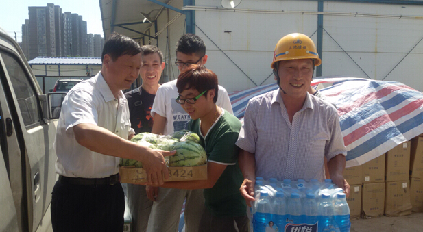 酷暑考驗(yàn)著我們的一線員工,更牽動著公司領(lǐng)導(dǎo)們的心。近日,由機(jī)電安裝分公司總經(jīng)理郭應(yīng)華帶隊(duì),蘇東副總經(jīng)理、綜合管理部、安全部一行五人組成的高溫慰問小組頂著烈日,迎著熱浪,帶著西瓜、礦泉水和防暑降溫藥品開展了為期一天半的高溫慰問活動,重點(diǎn)慰問了堯辰路、中電熊貓、政法、萬成、圩村、楊莊G40等項(xiàng)目部。