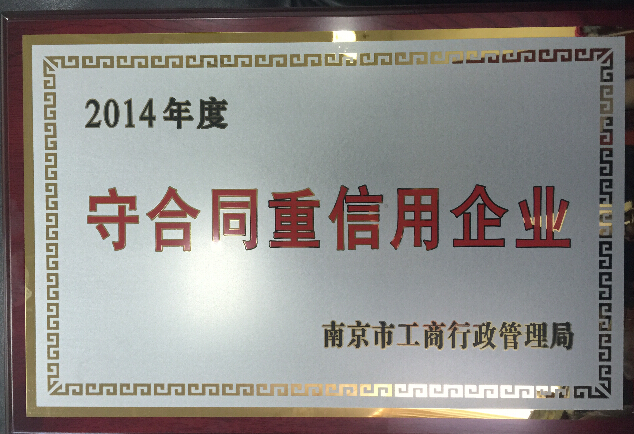 2015年8月,我公司榮獲南京市2014年度“守合同重信用”企業(yè)!笆睾贤匦庞谩逼髽I(yè)是國家工商管理部門對企業(yè)在合同信用方面的重要評價,旨在推進企業(yè)誠信建設,規(guī)范企業(yè)合同行為,促進經(jīng)濟社會持續(xù)健康發(fā)展。我公司連續(xù)多年榮獲“守合同重信用”企業(yè)。