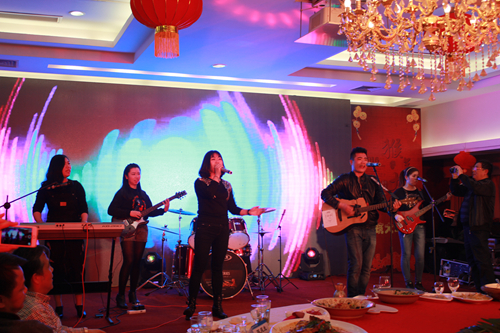 機(jī)關(guān)員工的樂(lè)隊(duì)表演,是公司團(tuán)拜會(huì)舞臺(tái)上第一次由集團(tuán)自己的員工彈奏樂(lè)器,演奏的架子鼓、吉他、貝斯,配合默契,活力四射,一曲《海闊天空》把大地人的眼光引向美好的未來(lái),激發(fā)起奮斗的激情夢(mèng)想,最后獲得了最受歡迎的節(jié)目評(píng)選一等獎(jiǎng)。