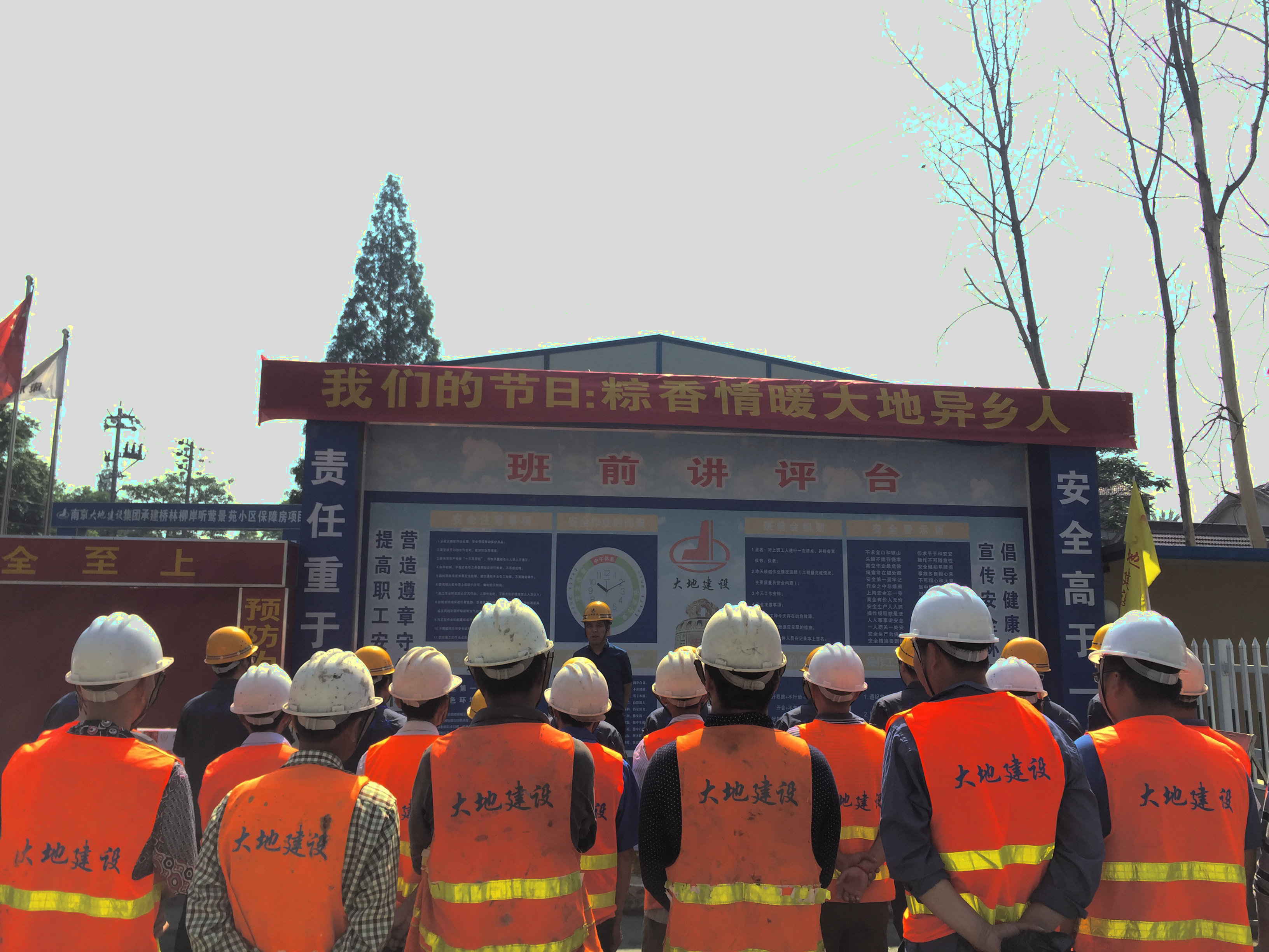 端午節(jié)前夕,集團公司就“我們的節(jié)日·粽香情暖大地異鄉(xiāng)人”為主題開展了端午慰問施工現(xiàn)場人員的活動,并準備了粽子、咸鴨蛋等慰問物品。5月27日下午由集團公司總裁江中明及黨委書記陳慶生同志帶隊,股份公司相關領導陪同前往浦口區(qū)橋林柳岸聽鶯景苑小區(qū)保障房工地對工作在一線的員工進行了慰問,親手送上節(jié)日慰問品,轉達了集團公司的問侯和祝福。總裁還仔細檢查施工現(xiàn)場并詢問了工程進展情況、人員的生活情況,關心大家要注意勞逸結合,注重安全生產(chǎn)。