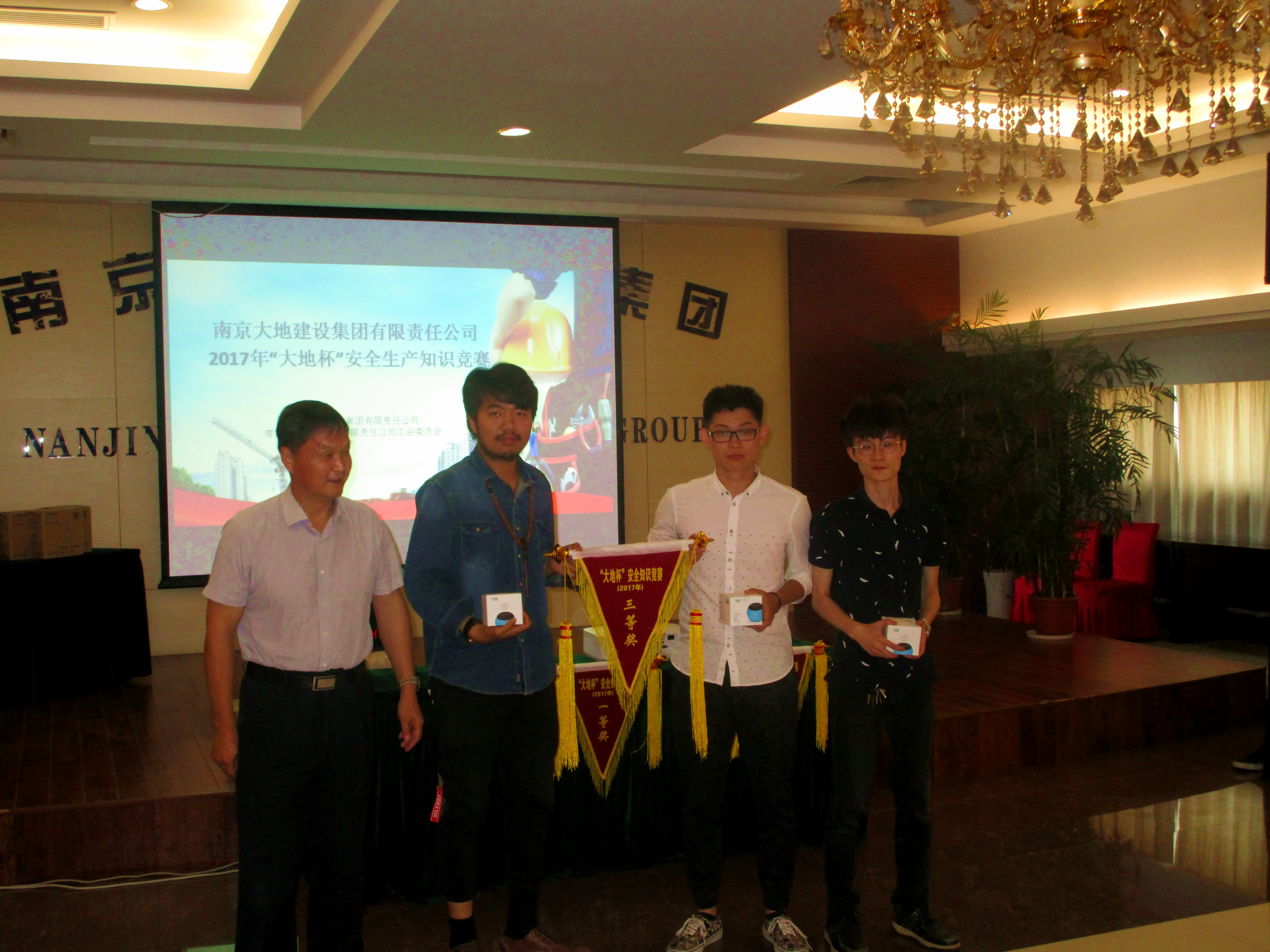 本次競賽面向生產(chǎn)一線,公司主要的基層單位全部參加(其中股份公司以項目部為單位組隊參賽)。競賽分為預(yù)賽、決賽兩個環(huán)節(jié),題型包括必答題、互選指定答題、搶答題、風險題、參與題。場上氣氛緊張熱烈,參賽隊員憑借豐富的安全管理知識、過硬的安全管理素質(zhì),展開了激烈角逐,最終丁家莊A27地塊項目部獲得第一名、豪豐公司獲得第二名、雙子星廣場項目部獲得第三名。場下觀眾熱情踴躍,掌聲頻起,競賽特設(shè)的觀眾題環(huán)節(jié)更是將場上氣氛推向了高潮,共有八位現(xiàn)場觀眾參與了答題,獲得觀眾獎。最后由陳書記、葉總、郭總分別為獲得第一、第二、第三名的代表隊頒獎。