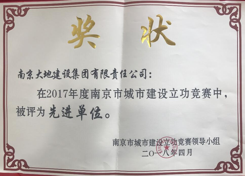 近日,南京大地建設(shè)集團(tuán)在2017年度南京市城市建設(shè)(管理)立功競(jìng)賽中,被評(píng)為“先進(jìn)單位”。