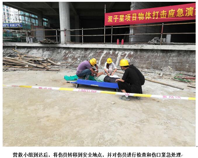 2018年安全生產(chǎn)月以來,雙子星項目部積極開展各項安全生產(chǎn)月活動。近日,雙子星項目部組織了物體打擊事故應(yīng)急救援預(yù)案演練。整個演練活動快速、有效,演練過程緊張有序。通過本次演練,不僅檢驗了項目部的應(yīng)急反應(yīng)及處理能力,也更進(jìn)一步增強了高效有序處理意外事故的能力。