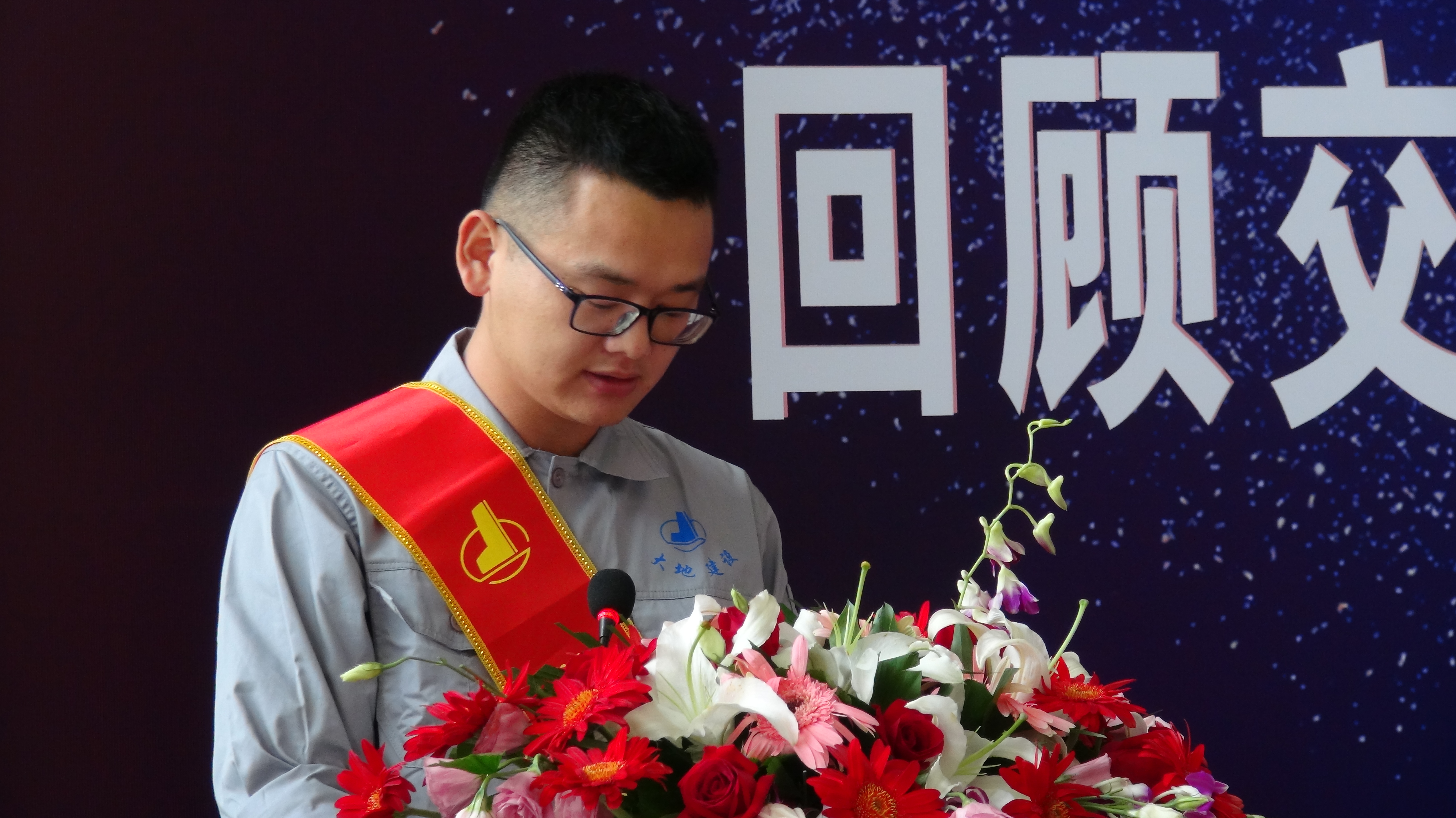 受表彰選手代表孫譽(yù)翔現(xiàn)場(chǎng)發(fā)言,感謝公司的信任,他們一定會(huì)和所以大地人一家人、一條心、一個(gè)目標(biāo)、一股勁,為大地建設(shè)的明天貢獻(xiàn)自己的力量!