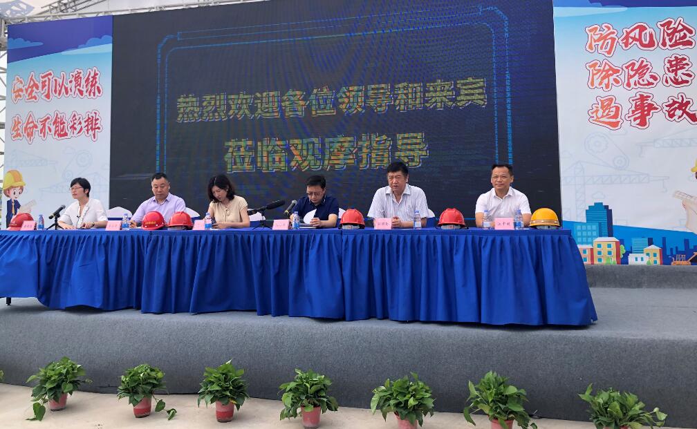 6月25日上午9:30分,建鄴區(qū)建筑工程突發(fā)事故綜合應(yīng)急演練在我公司總承包的一中分校項(xiàng)目實(shí)施。這次活動(dòng)由南京市建鄴區(qū)建設(shè)局、南京建鄴國有資產(chǎn)經(jīng)營集團(tuán)有限公司主辦,由南京市建鄴區(qū)建筑安全生產(chǎn)監(jiān)督站承辦,我們南京大地建設(shè)集團(tuán)有限責(zé)任公司和南京市建鄴區(qū)消防救援大隊(duì)、南京明基醫(yī)院協(xié)辦。參加的領(lǐng)導(dǎo)有建鄴區(qū)人民政府副區(qū)長孫小軍;南京市城鄉(xiāng)建設(shè)委員會(huì)質(zhì)安處副處長李琍;建鄴區(qū)建設(shè)局局長顧穎勤等。集團(tuán)公司總裁江中明及現(xiàn)代建筑業(yè)平臺(tái)黨委書記顧衛(wèi)東,以及集團(tuán)安環(huán)處和集團(tuán)子分公司安全負(fù)責(zé)人、項(xiàng)目部安全主管到會(huì)參加。參加的人員和單位還有建鄴區(qū)各街道、消防大隊(duì)、生態(tài)科技島經(jīng)開區(qū)、高新區(qū)、江東、河西CBD等各安全分管領(lǐng)導(dǎo);建鄴區(qū)區(qū)管項(xiàng)目建設(shè)工程建設(shè)單位、監(jiān)理單位、施工單位負(fù)責(zé)人等200余人。