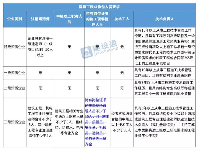 本文將各類施工總承包對人員的要求進行了一個匯總,供讀者參考