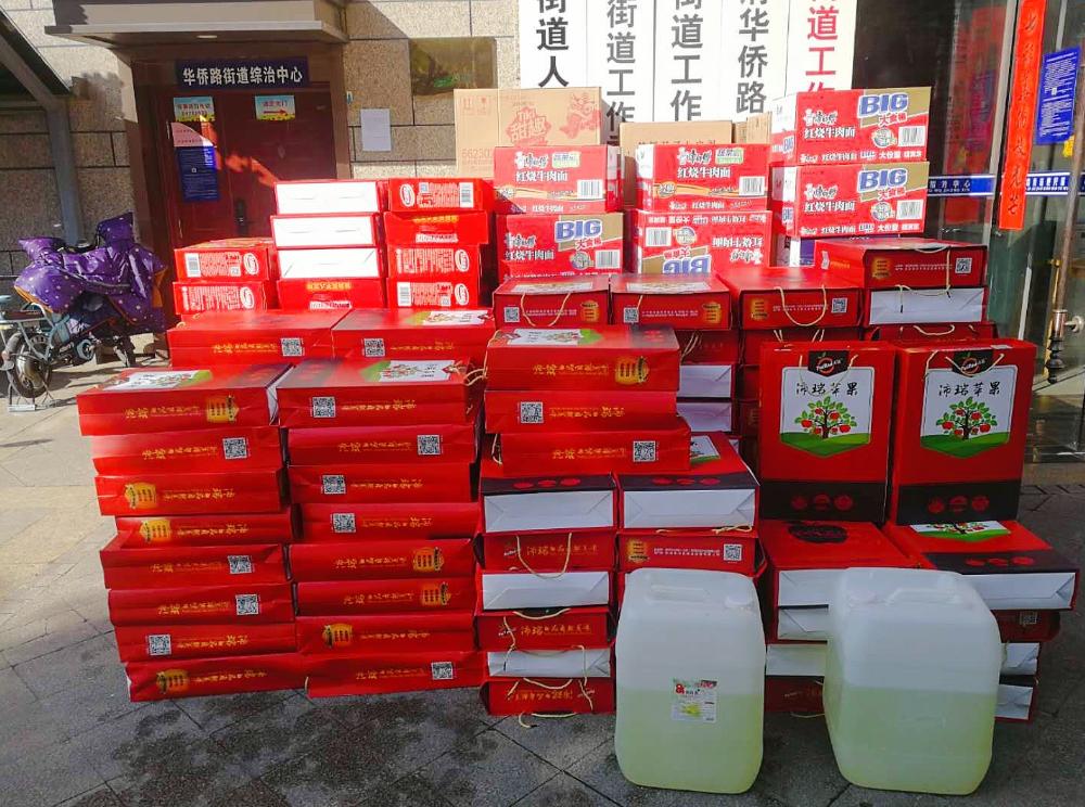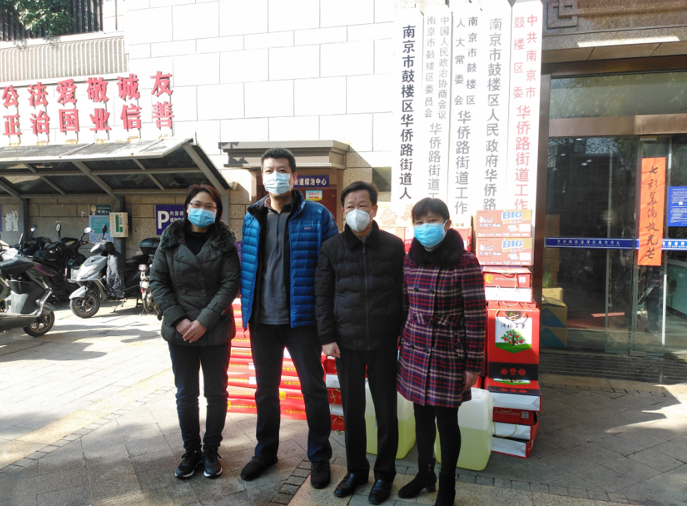 2月10日,復(fù)工首日。集團(tuán)黨委書記于春代表南京大地建設(shè)集團(tuán)來到鼓樓區(qū)華僑路街道向工作人員表示感謝和慰問,并送上牛奶,水果,方便食品等慰問品和消毒液助力街道防疫工作。