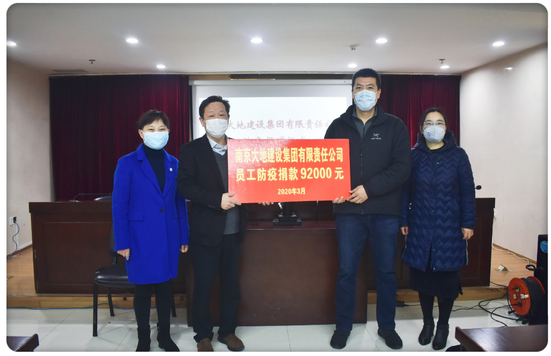 3月17日上午,集團黨委書記、副董事長于春一行代表南京大地建設(shè)集團再次來到華僑路街道,向街道捐贈防疫款項。華僑路街道工委書記梁衛(wèi)國、人大工委主任孫焰艷、工委副書記奉海濤和辦事處副主任宋劍接待了于總一行。