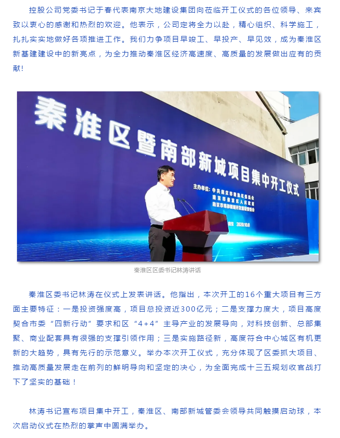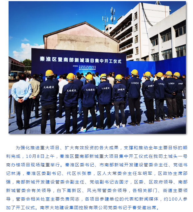 秦淮區(qū)暨南部新城項(xiàng)目集中開(kāi)工儀式在我司土城頭一號(hào)項(xiàng)目現(xiàn)場(chǎng)圓滿舉辦