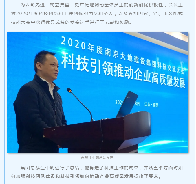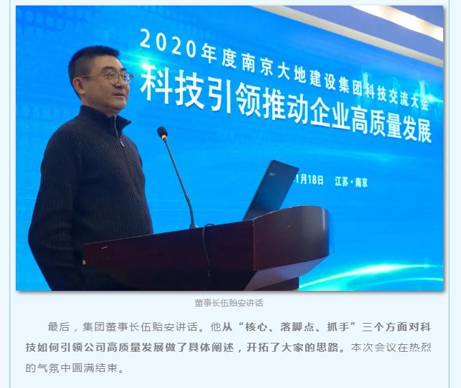 科技引領(lǐng)未來 | 2020年度南京大地建設(shè)集團(tuán)科技交流大會在寧圓滿舉行