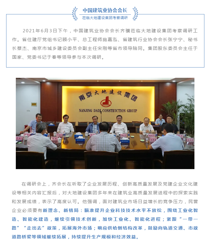中國建筑業(yè)協(xié)會會長齊驥蒞臨大地建設(shè)集團(tuán)考察調(diào)研