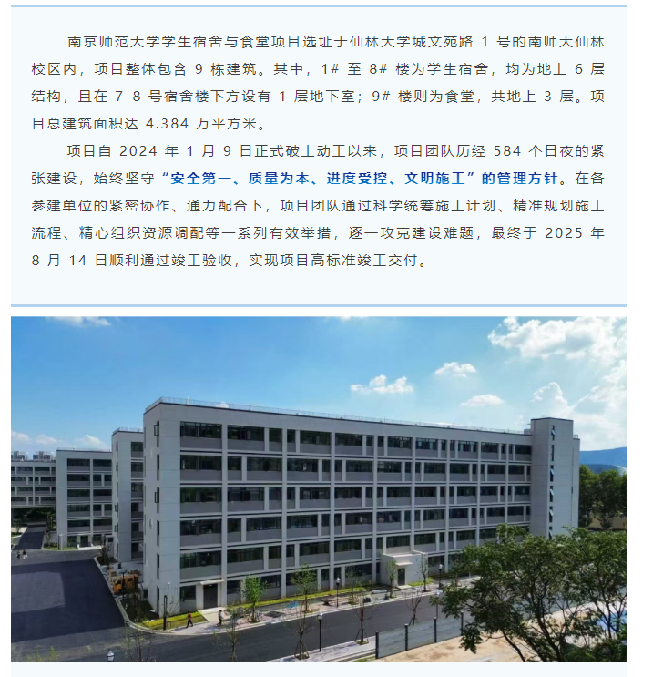 鑄精品工程 贏業(yè)主贊譽(yù) | 南師大學(xué)仙林校區(qū)宿舍食堂項目圓滿交付